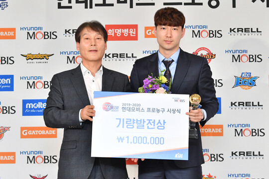 김낙현은 2018~2019 시즌 식스맨상을 받았다. 핵심 벤치 멤버로 자기 가치를 인정받았다. 그리고 이번 시즌에는 기량발전상까지 받았다. 78표를 획득한 김낙현은 14표에 그친 울산 현대모비스의 김국찬(190cm, F)을 여유롭게 제친 것. 상금 1,000,000원의 주인공이 되기도 했다.