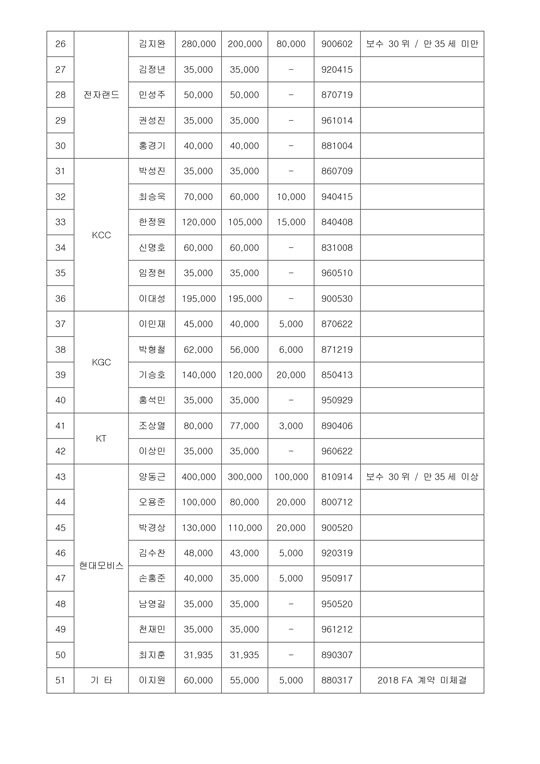 [바스켓코리아 = 손동환 기자] KBL은 2020년 자유계약선수(FA) 대상 선수를 총 51명으로 확정했다.