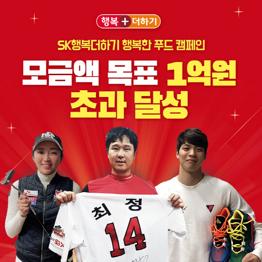 [바스켓코리아 = 김우석 기자] SK 팬들과 함께한 ‘SK행복더하기-행복한 푸드’ 캠페인이 목표 기부금액 1억원을 돌파, 총 1억 1천5백만원의 성금을 모금하고 30일(목) 성공적으로 종료됐다.