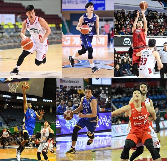 | 상단 왼쪽부터 이현민(오리온)-신명호(KCC)-오용준(현대모비스)하단 왼쪽부터 문태영-김동욱(이상 삼성)-송창무(SK) |