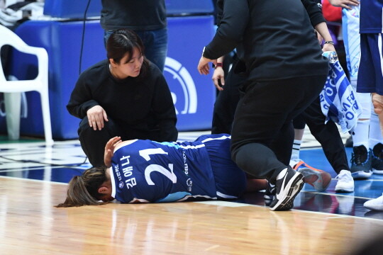 2쿼터 1분 58초 만에 무릎을 크게 다치는 장면이 나왔고, 김애나는 큰 고통을 느끼고 플로워에 쓰러졌다. 그리고 무릎인대 파열이라는 결과를 알려왔다. 적어도 10개월에 가까운 재활 기간을 가져야 하는 큰 부상이었다. 아쉬움과 안타까움이 공존하는 순간이었다.