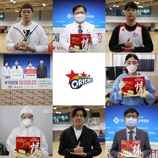 고양 오리온 구단이 일산백병원에 6년 연속 의료 취약계층 환아를 후원하고 의료진을 위한 ‘초코파이情’ 5000개를 비대면으로 전달했다. 사진=고양 오리온 제공