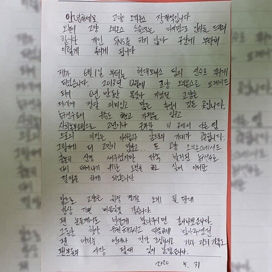 장재석은 이에 대한 미안함을 자필 편지로 남겼다. 그는 오리온 SNS를 통해 “오늘 고양 오리온스 소속으로는 마지막으로 인사를 드리려고 합니다”며 편지를 시작했다.