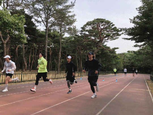 격일제로 소나무 숲에 우레탄 트랙을 조성해 높은 황성공원 숲을 12바퀴 정도 반복한다. 800m 트랙이다. 10km 정도가 된다. 오전에는 웨이트와 서키트 트레이닝을 통해 근력을 키우는 프로그램도 실행 중이다. 화요일에는 체육관에서 볼 운동으로 분위기를 환기 시킨다.
