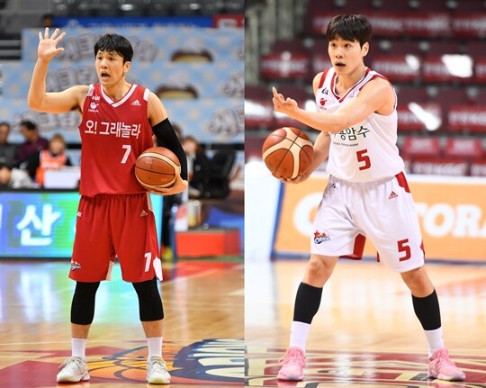 | 오리온의 박재현(왼쪽)과 한호빈(오른쪽) |