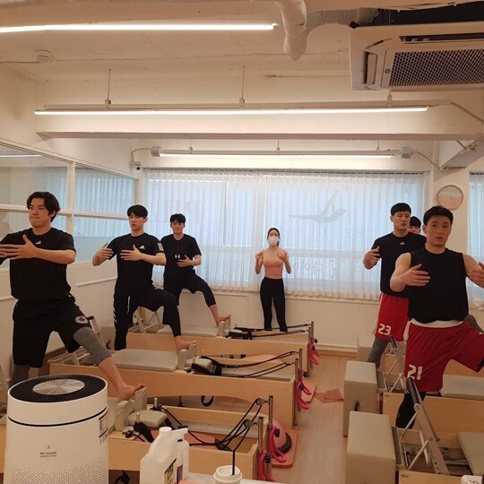 훈련을 지도하고 있는 벨르핏 필라테스 스튜디오 서보영 강사는 "농구 선수들이 힘은 좋지만, 필라테스는 처음인 선수들이 많아 높은 수준으로 진행하지는 않고 있다"고 말했다.
