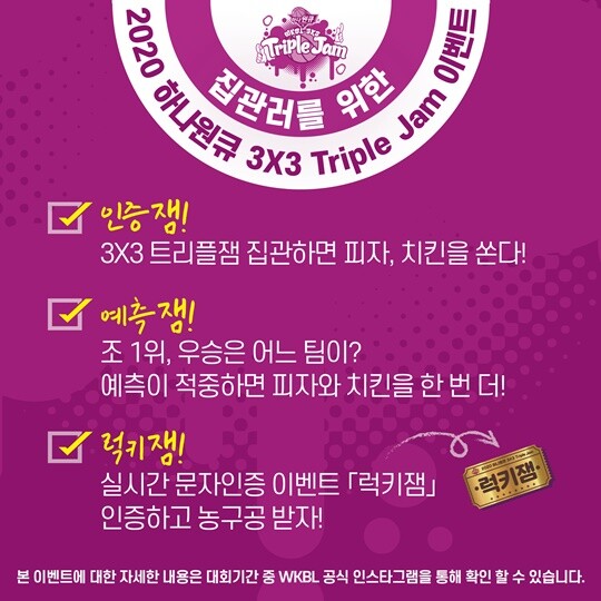 [바스켓코리아 = 김영훈 기자] WKBL이 트리플잼을 지켜보는 팬들을 위해 이벤트를 실시한다.